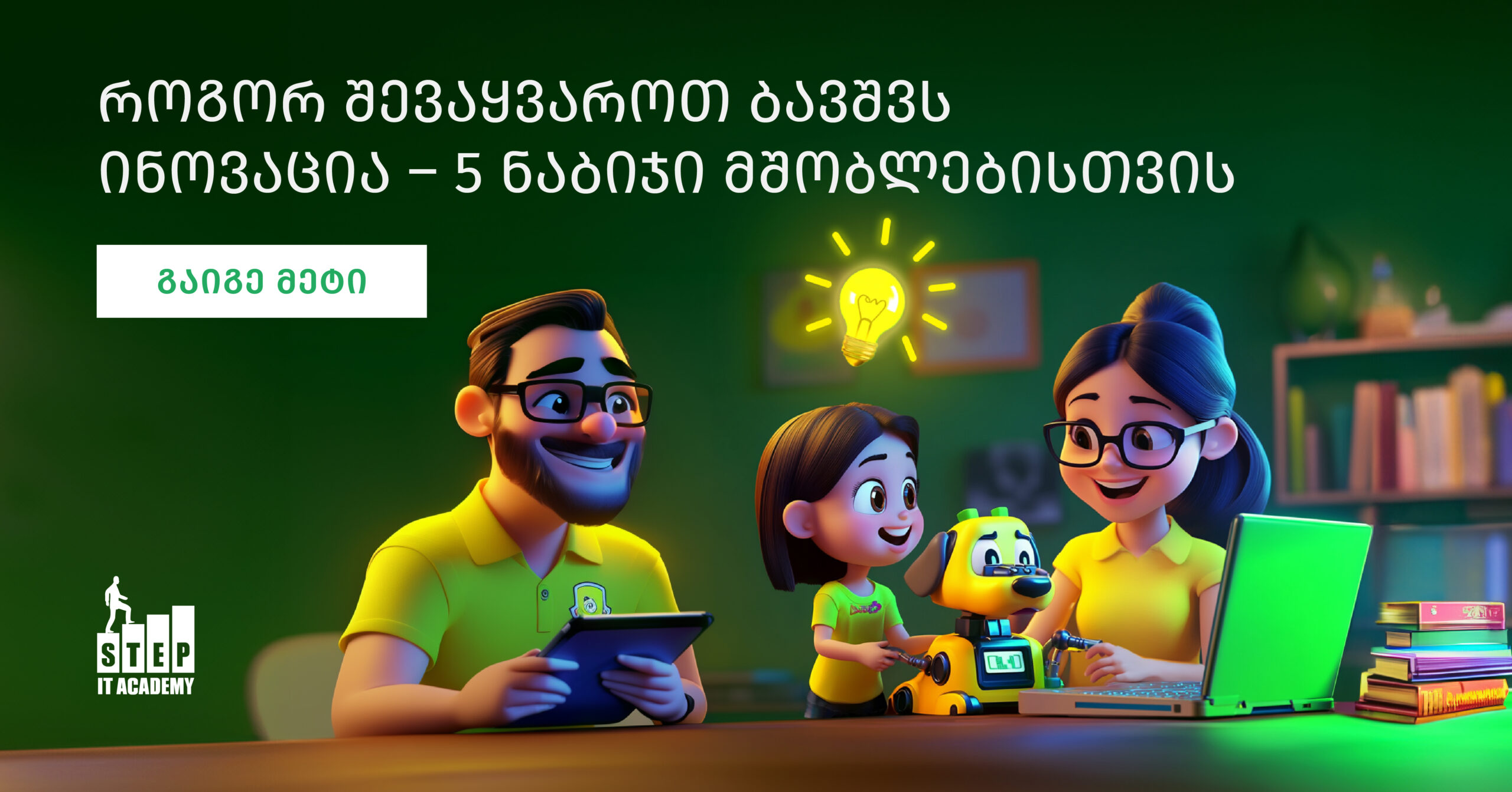 ბავშვის კარიერულ განვითარებასთან დაკავშირებული რჩევებისთვის, გაეცანით სტეპ სკოლის ბლოგს: როგორ ეხმარება IT განათლება სკოლის მოსწავლეებს მომავალი კარიერის განვითარებაში.